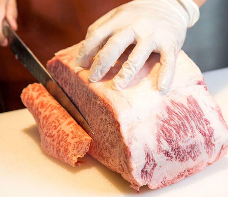 Chef slicing A5 Wagyu beef at Yazawa Saigon - Source: yazawameat.vn